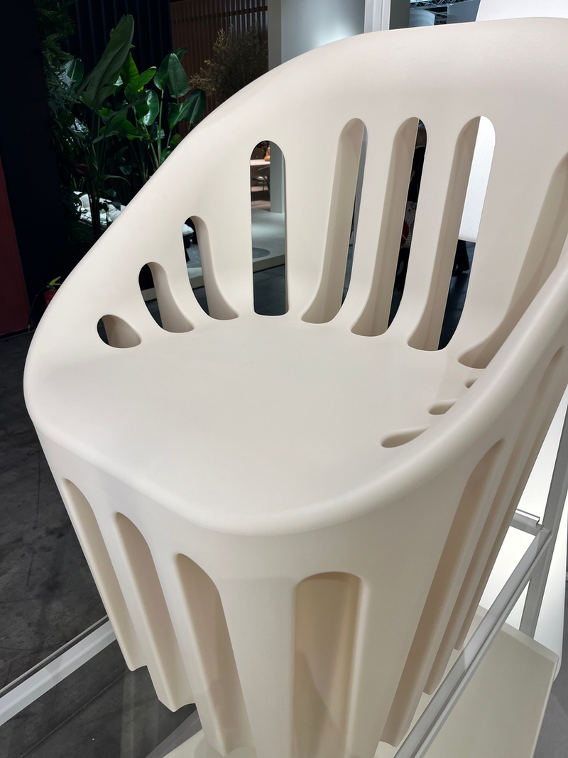Working with Slide, we engineered the chair to be manufactured using a two-part mold while preserving the elegance of the arch details. The chair debuted at Milan 2024, showcased at Slide's booth and serving as a seating area for Salone Satellite. Beyond the trade fair, the chair also provided seating for Slide's iconic event at the Indigo Hotel.